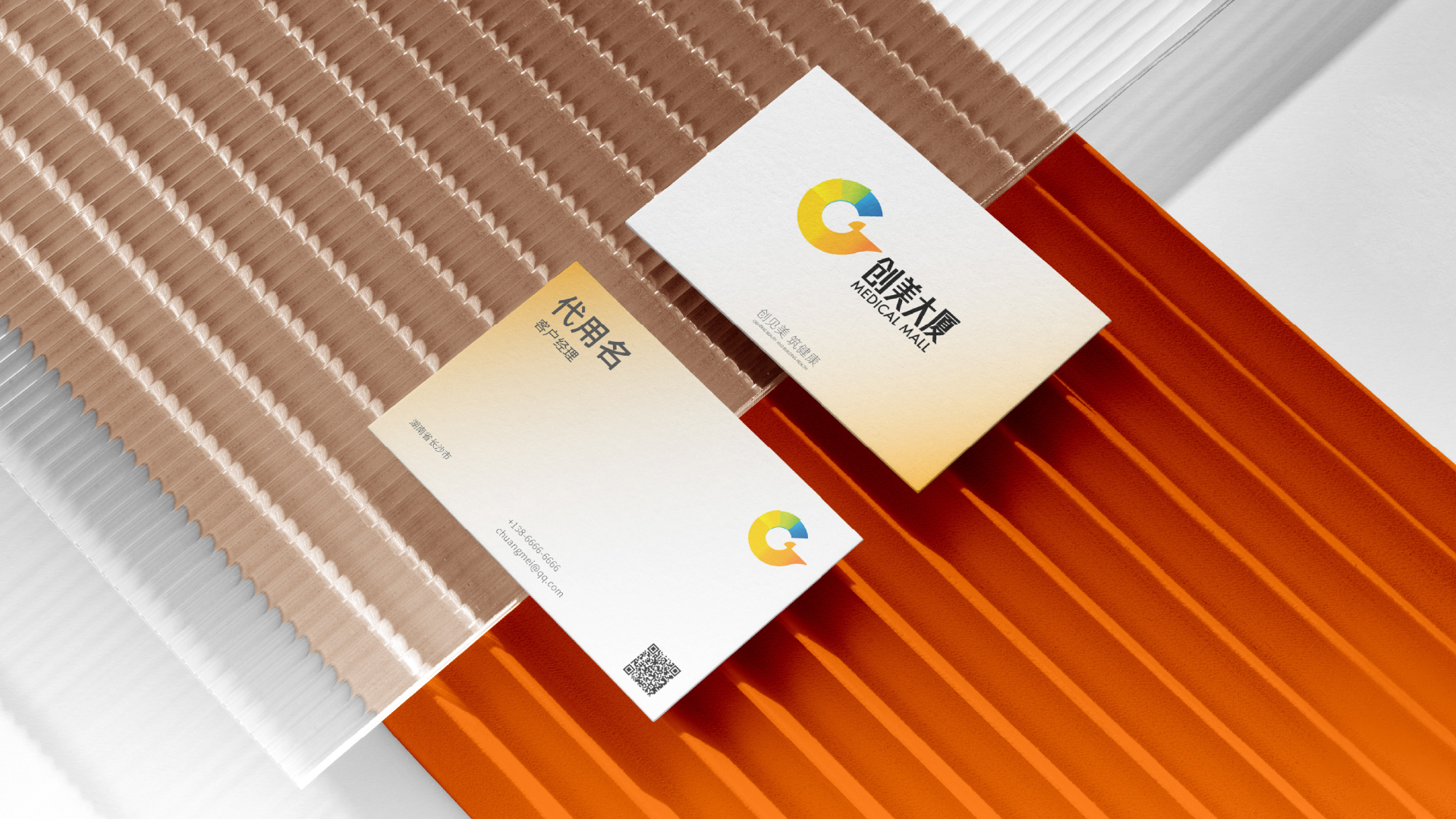 随后,相传为创美大厦落地全套VI系统,并将品牌基因延伸至商业综合体导视设计与产业园导视设计中。从户外标识到室内动线,从楼层指引到功能分区,导视系统既确保信息清晰高效,又以统一的视觉语言强化“轻医疗·悦生活”的空间体验,让消费者在步入大厦的每一刻都能感知品牌的独特气质。