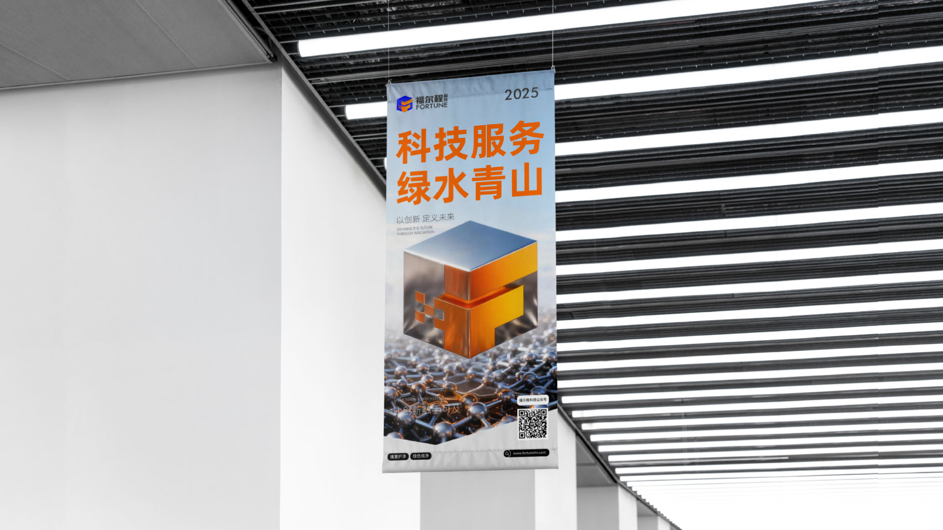 元素巧妙结合: 将福尔程的首字母“F”与六面体进行立体化融合,形成了一个独一无二、极具辨识度的超级符号。这一设计既满足了品牌出海所需的简约国际化风格,又承载了“金属元素全周期服务商”的战略定位。
